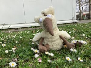 Eines schönen Morgens war Ralf in richtig guter Laune und beschloss, auch so zur Arbeit in der Bücherei zu gehen. Doch etwas war komisch: Viele Blüten erwachten vom Winter und strahlten in verschiedenen bunten Farben. Viele Kinder rannten in ihren Gärten umher und suchten begeistert Eier und kleine Körbchen mit Überraschungen. Dieses Erlebnis kannte er aus seinem Land nicht und wunderte sich, was die Kinder machten. Als er endlich an der Bücherei ankam, waren wir von der Schülerzeitung schon da. Timo und Lili erklärten Ralf: „Heute ist Ostern, dann wenn die Blumen erwachen und die Kinder Ostereier suchen.“